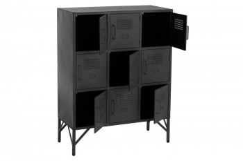 Tout en métal, cette armoire dispose de 9 casiers avec porte-étiquettes, offrant un grand espace de rangement et de stockage. Sa forme et son design, rappelant les casiers d'usine et les armoires des salles de sport d'un autre temps, plongeront votre pièce dans la tendance industrielle chic.