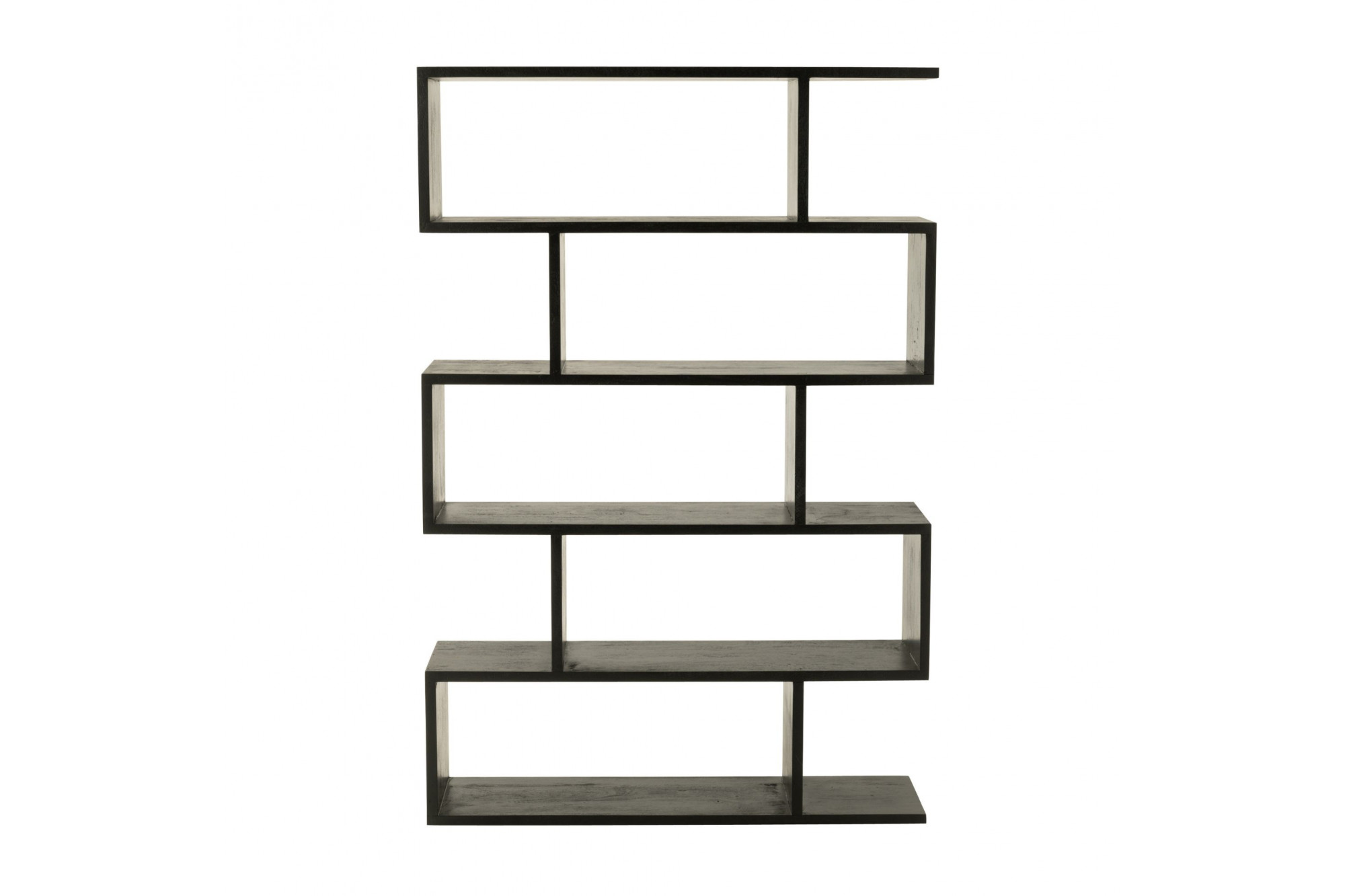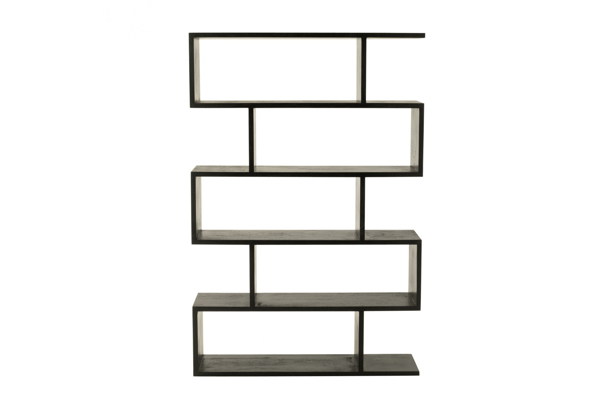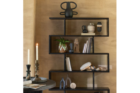 Sublimez votre intérieur avec cette bibliothèque en bois de manguier, disponible en deux finitions élégantes : naturel chaleureux ou noir profond. Son design moderne et minimaliste se distingue par une structure asymétrique et géométrique, composée de cinq étagères horizontales aux profondeurs variées, créant un jeu visuel dynamique et raffiné.