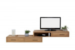 - Possibilité de suspension : Si vous manquez d’espace au sol, envisagez un meuble TV suspendu en bois. Cela libère de l’espace et donne une impression de légèreté dans la pièce.