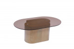 Table basse ovale en bois et verre marron fumé L100 - ALBA