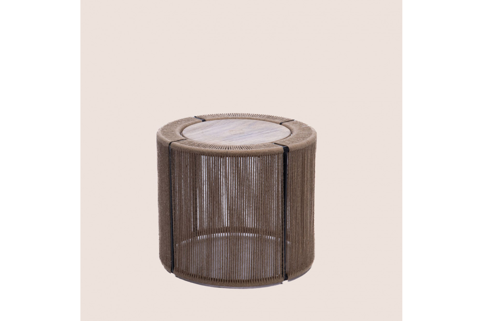 Bout de canapé rond en métal manguier et jute D46 - KRUGER