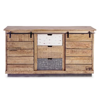 Ce magnifique buffet contemporain de 200 cm longueur s'agence en trois portes et quatre tiroirs asymétriques aux dimensions déstructurées. Ces rangements offrent un bon volume de rangement conçu pour accueillir votre vaisselle, couverts ou linge de table. Avec un piétement en bois massif, ce meuble se positionne à 15 cm du sol.