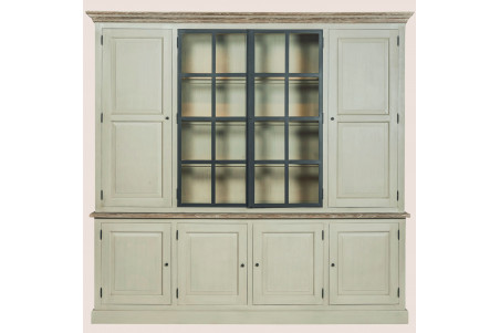 Ses lignes épurées et ses plateaux en bois massif cérusé lui confèrent tout le charme authentique des meubles de famille. Vous bénéficiez d'une grande capacité de rangement grâce à ses 8 portes pleines et vitrées. Le buffet vaisselier est agencé de 3 étagères dans la partie vitrée avec éclairage LED pour une ambiance cosy. Derrière les 2 grandes portes de la partie haute, vous trouverez également 3 étagères, tandis que la partie basse est équipée d'une tablette pour organiser vos objets selon vos besoins.