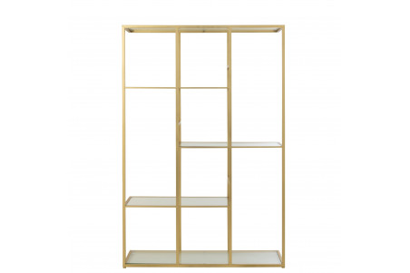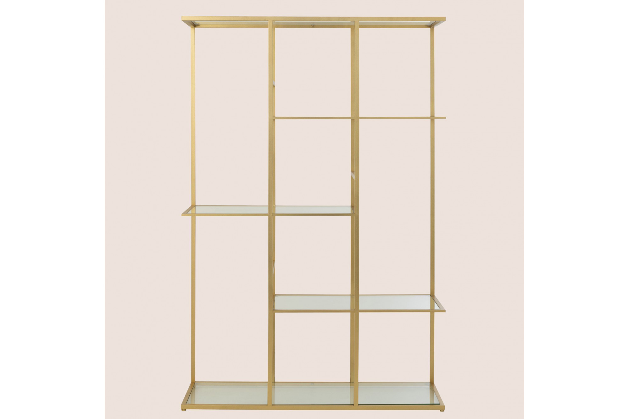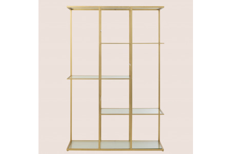 Etagère bibliothèque asymétrique en verre et métal doré - BABEL