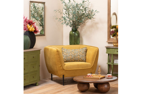 Le revêtement en tissu jaune apporte une touche vibrante et accrocheuse à votre espace de vie, créant un point focal visuel qui ne manquera pas de capter l'attention. Sa forme ergonomique et son rembourrage généreux en font une assise confortable, vous invitant à vous détendre après une longue journée.