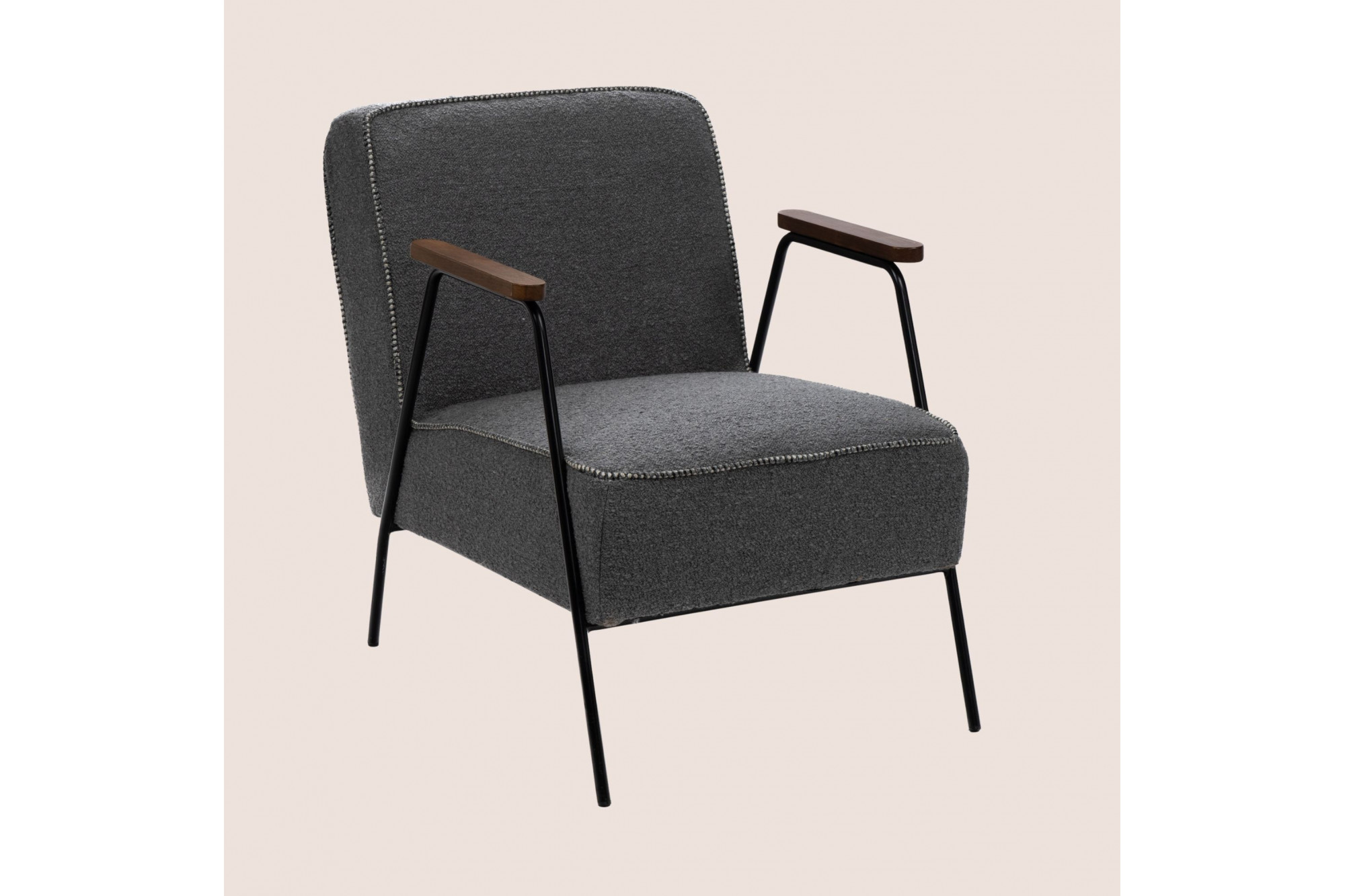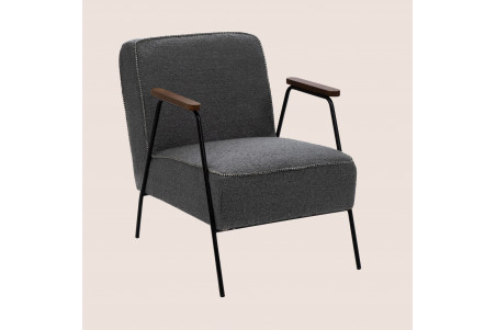 Son piètement en métal noir lui confère une solidité et une stabilité remarquables, tandis que son accoudoir en bois ajoute une note chaleureuse et naturelle.