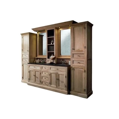 Ensemble de salle de bain en chêne massif, au style cottage très romantique.