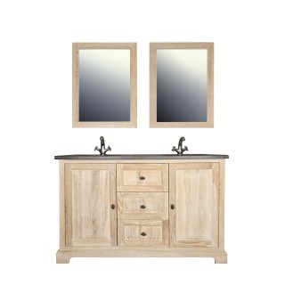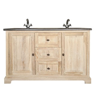 Meuble double vasques de 120 cm en chêne et métal, pour une salle de bain à vivre.