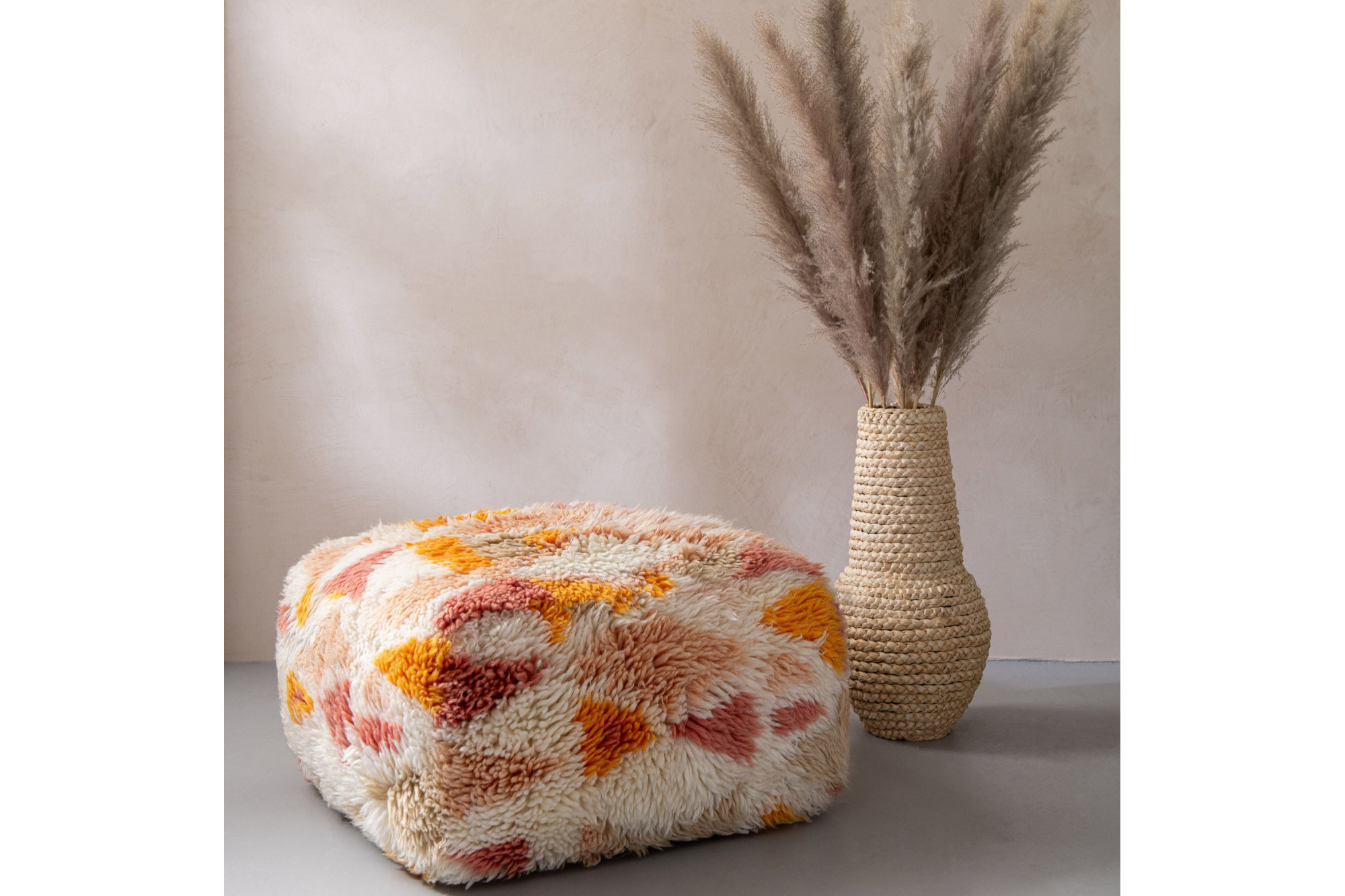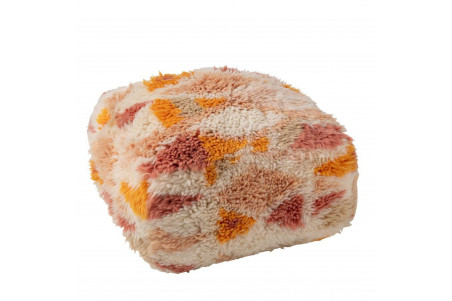 Ce pouf ethnique en laine, séduit par sa texture duveteuse et son allure artisanale. En laine à poil haut, il offre une sensation douce et chaleureuse au toucher. Sa base blanc crème est ponctuée de taches irrégulières dans des tons orangés, rosés et beiges, créant un motif organique et vivant. Sa forme en fait un repose-pied idéal ou une assise décorative discrète. Son design multicolore s’intègre facilement dans divers styles d’intérieur, ajoutant une touche bohème et accueillante. Il capte l’attention par ses nuances et sa texture. Ce pouf allie esthétique et fonctionnalité, parfait pour enrichir un salon, une chambre ou un coin lecture. Léger et portable, il devient un compagnon déco polyvalent, chaleureux et expressif, qui invite à la détente tout en affirmant une personnalité unique dans l’espace.
