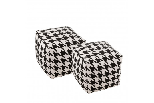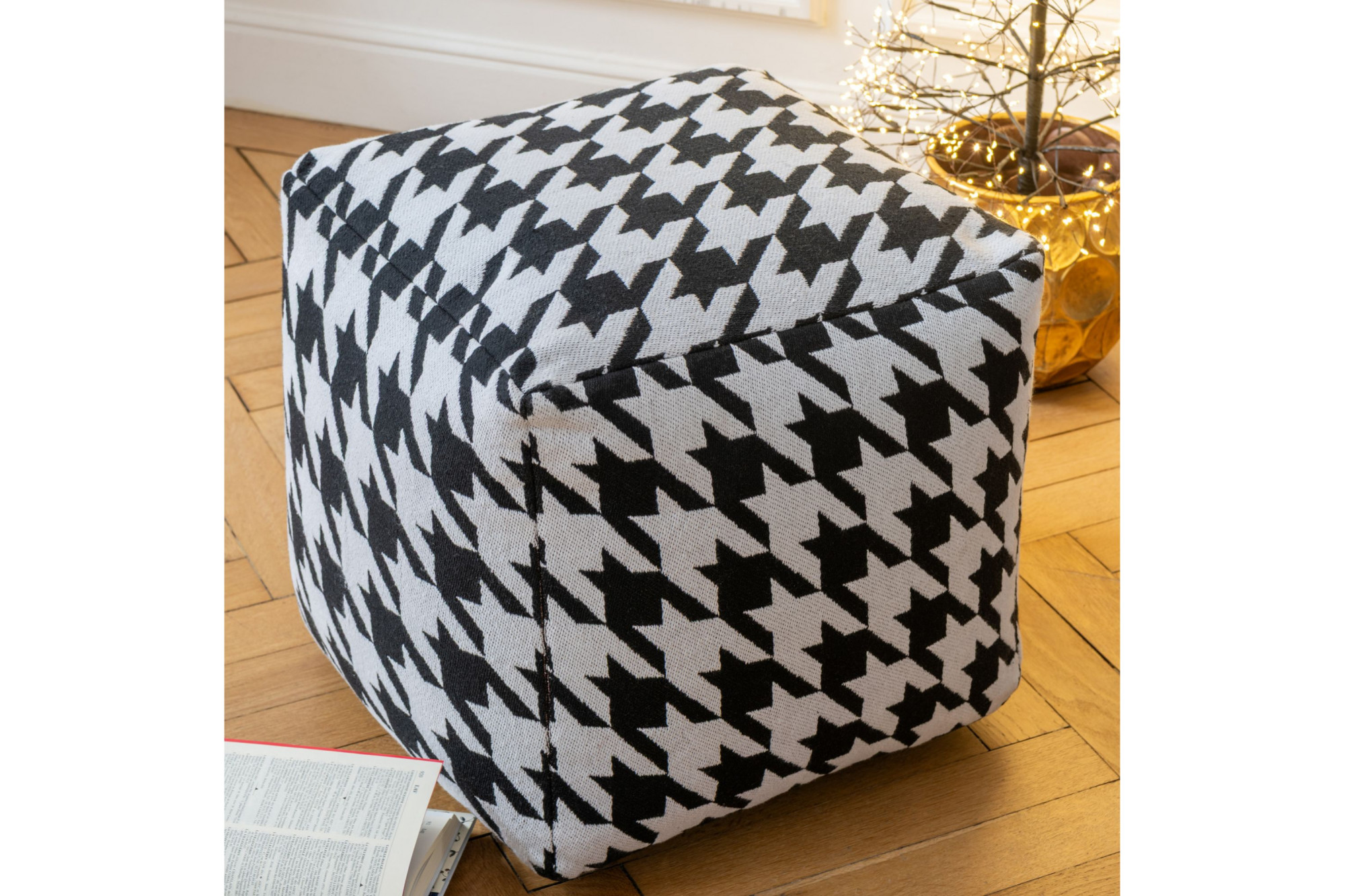 Poufs carrés pied-de-poule large noir et blanc (lot de 2) - POULEA