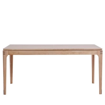Réalisée en chêne blanchie, les lignes modernes de cette table s'adaptent à toute la décoration de votre salle à manger. Les pieds fuselés, légèrement inclinés caractéristiques du style scandinave, sont réalisés en chêne massif pour une plus grande durabilité et robustesse.