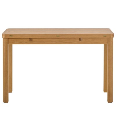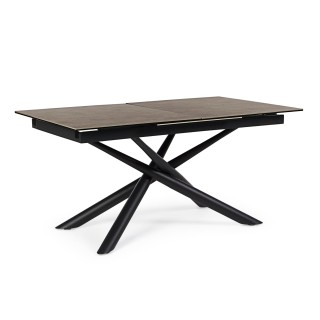 De forme rectangulaire, ses dimensions généreuses permettent d'accueillir 8 convives. L’intégration d'un système simple et astucieux permet de loger deux allonges papillon sous le plateau et d'agrandir la table sans effort, augmentant la capacité de réception de 8 à 12 convives.