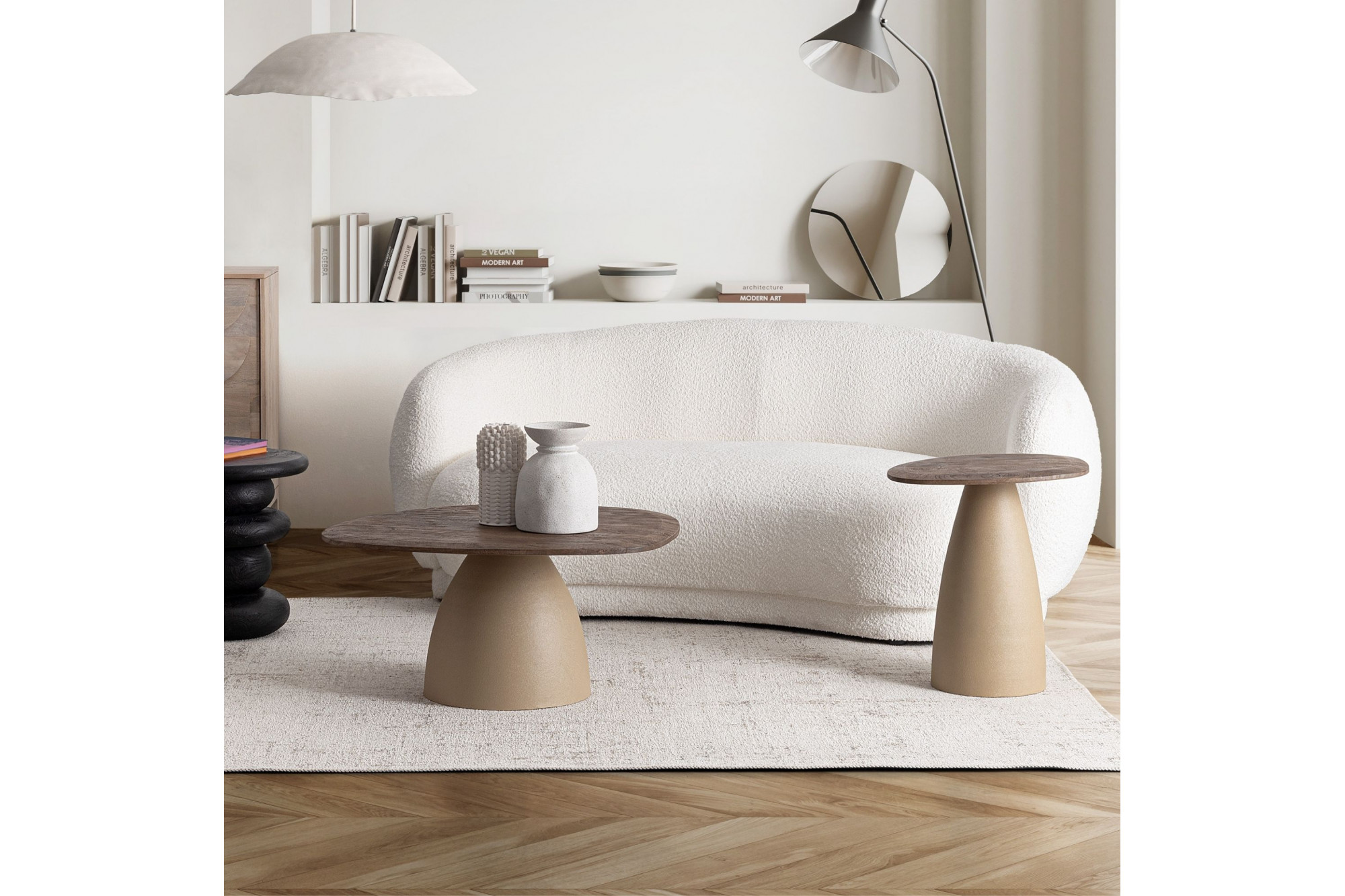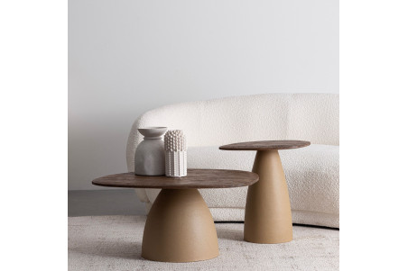 Table basse organique en manguier et métal crème L86 - SHIVA
