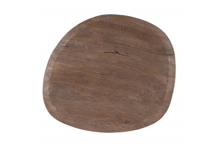 Matières : plateau en manguier de forme asymétrique; pied en métal texturé