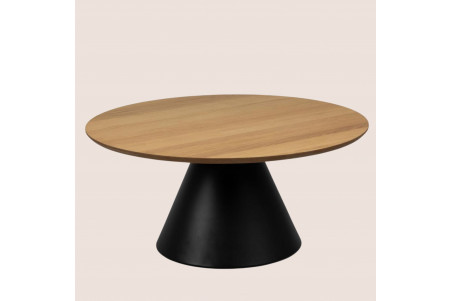 Cette table basse assure sophistication et élégance dans votre salon. Elle peut recevoir une bougie parfumée, une plante verte, votre apéro ou le livre en cours. La table basse en placage chêne et métal noir est l'alliée pour embellir votre salon et accueillir amis et famille dans un lieu soigné et convivial Le design épuré du piétement conique et central se fond subtilement sous le plateau rond de dimension agréable. Il apporte une bonne stabilité. Il marque la singularité de votre espace salon et peut s'associer à un bout de canapé plus haut, au diamètre plus étroit pour sublimer un espace plus grand.