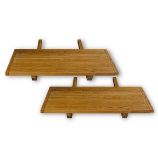 Le plateau, renforcé par une ceinture épaisse, est panneauté selon les pratiques des ébénistes d’autrefois. Deux imposantes chevilles en chêne à chaque angle scellent les tenons/mortaises et garantissent une parfaite rigidité du plateau. Même le pied de la table est assemblé à l’ancienne. Cette table de salle à manger peut recevoir deux allonges en bois massif (Réf. 9022) et ainsi accueillir jusqu’à 12 convives.