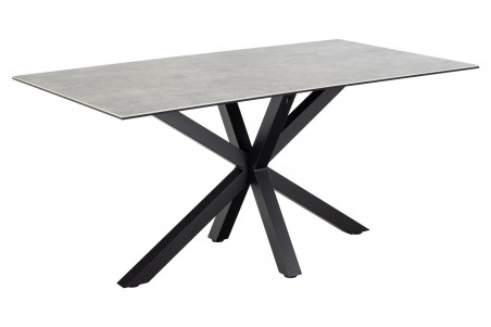 Table de salle à manger en céramique et métal, moderne et robuste.