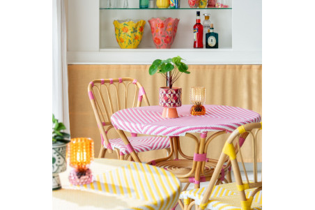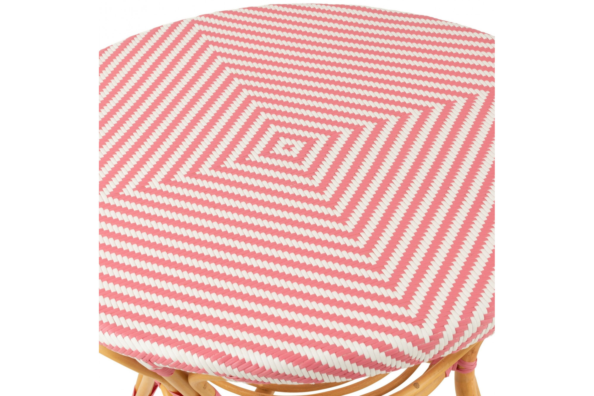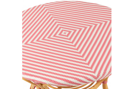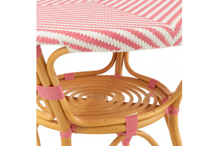 Invitez le charme parisien dans vos espaces avec cette table à manger ronde au style chic et décontracté. Son plateau tissé arbore un motif de rayures obliques décliné en trois associations raffinées : blanc/rose pour une touche délicate et romantique, blanc/vert pour une ambiance fraîche et végétale, et blanc/bleu pour une note estivale et lumineuse. Le piètement en rotin naturel, aux nuances chaleureuses, offre une base solide tout en conservant une allure légère et aérienne. Une structure en courbes et angles relie les pieds, apportant équilibre et élégance à l’ensemble. Parfaite pour une salle à manger accueillante, une véranda baignée de lumière ou une terrasse conviviale, cette table s’intègre facilement dans différents styles d’aménagement. Elle fait partie d’une collection complète comprenant également des chaises, des tabourets et des tabourets de bar assortis, idéale pour créer un ensemble harmonieux et raffiné.