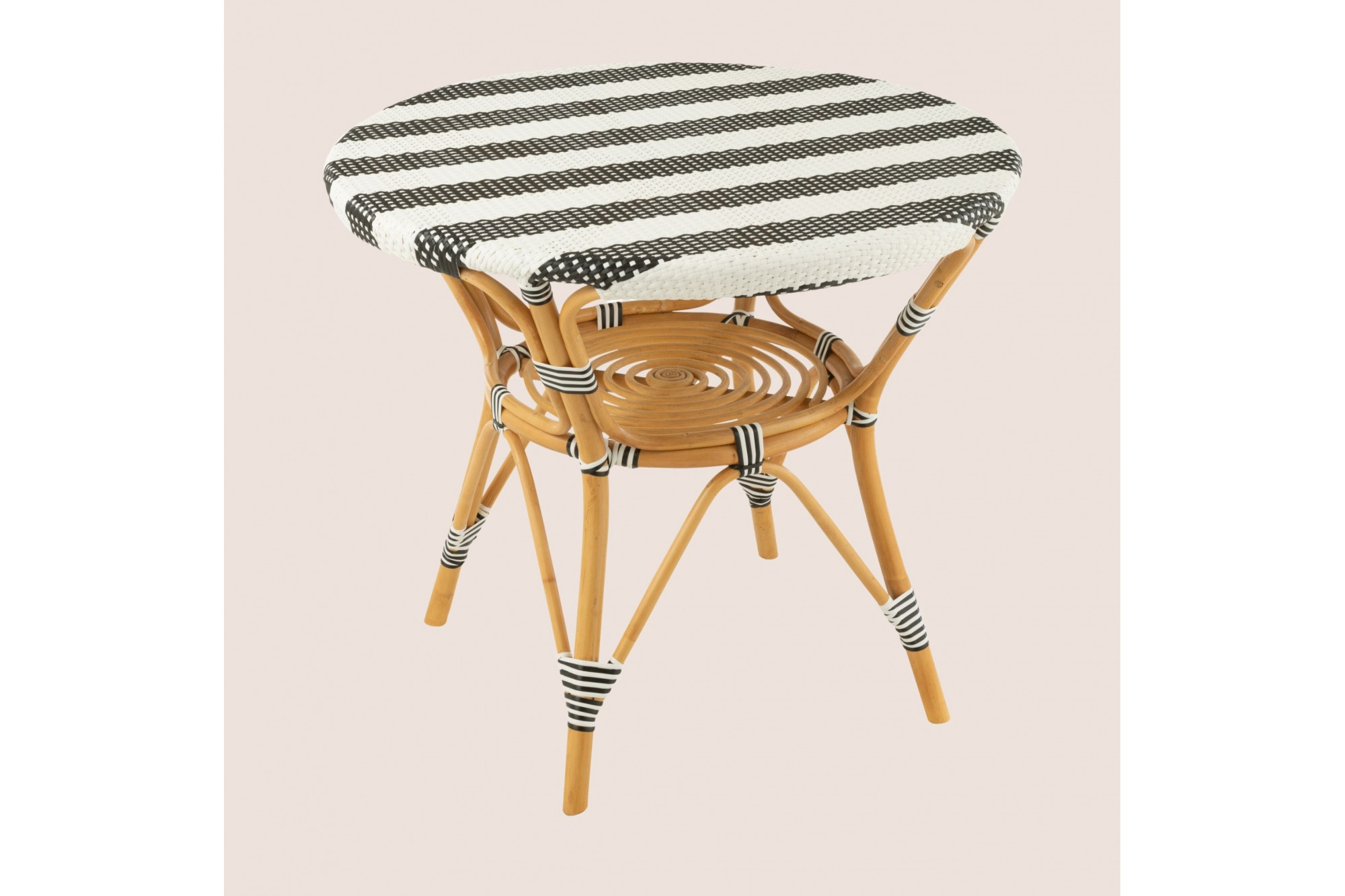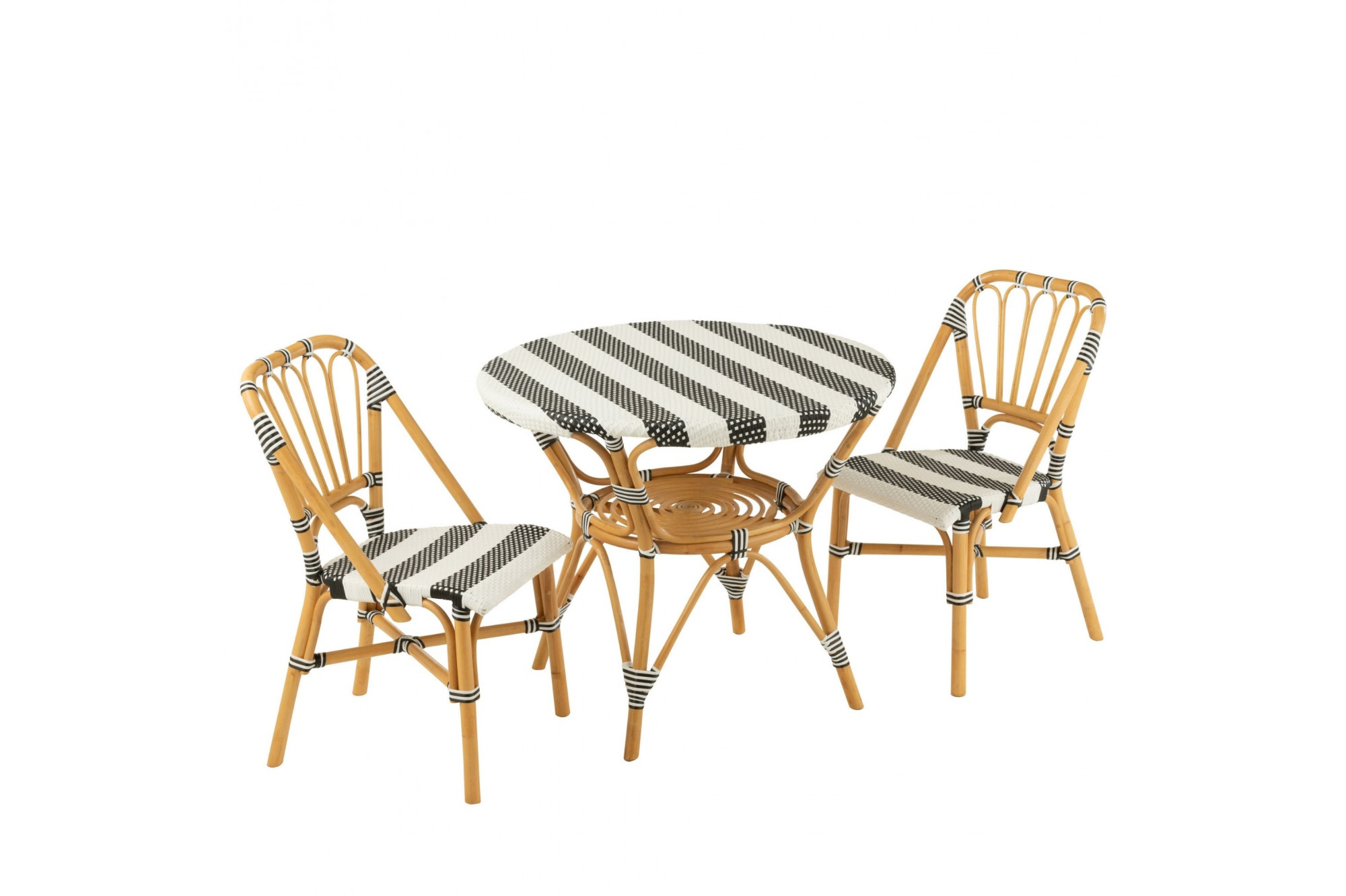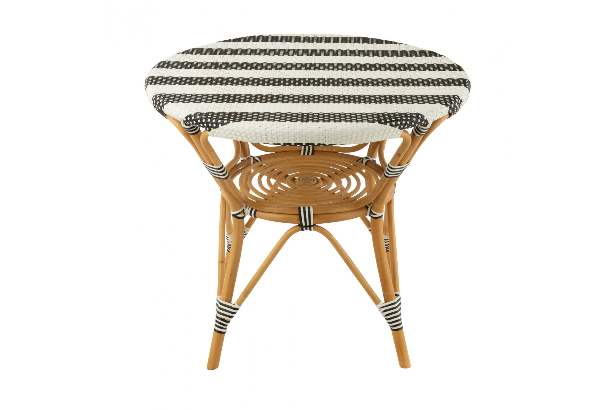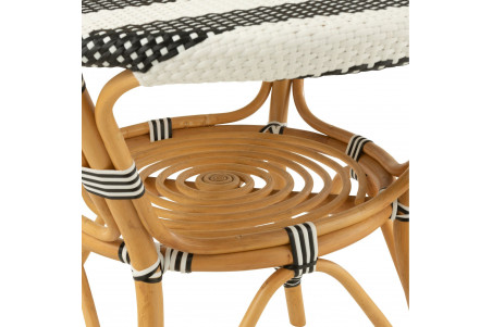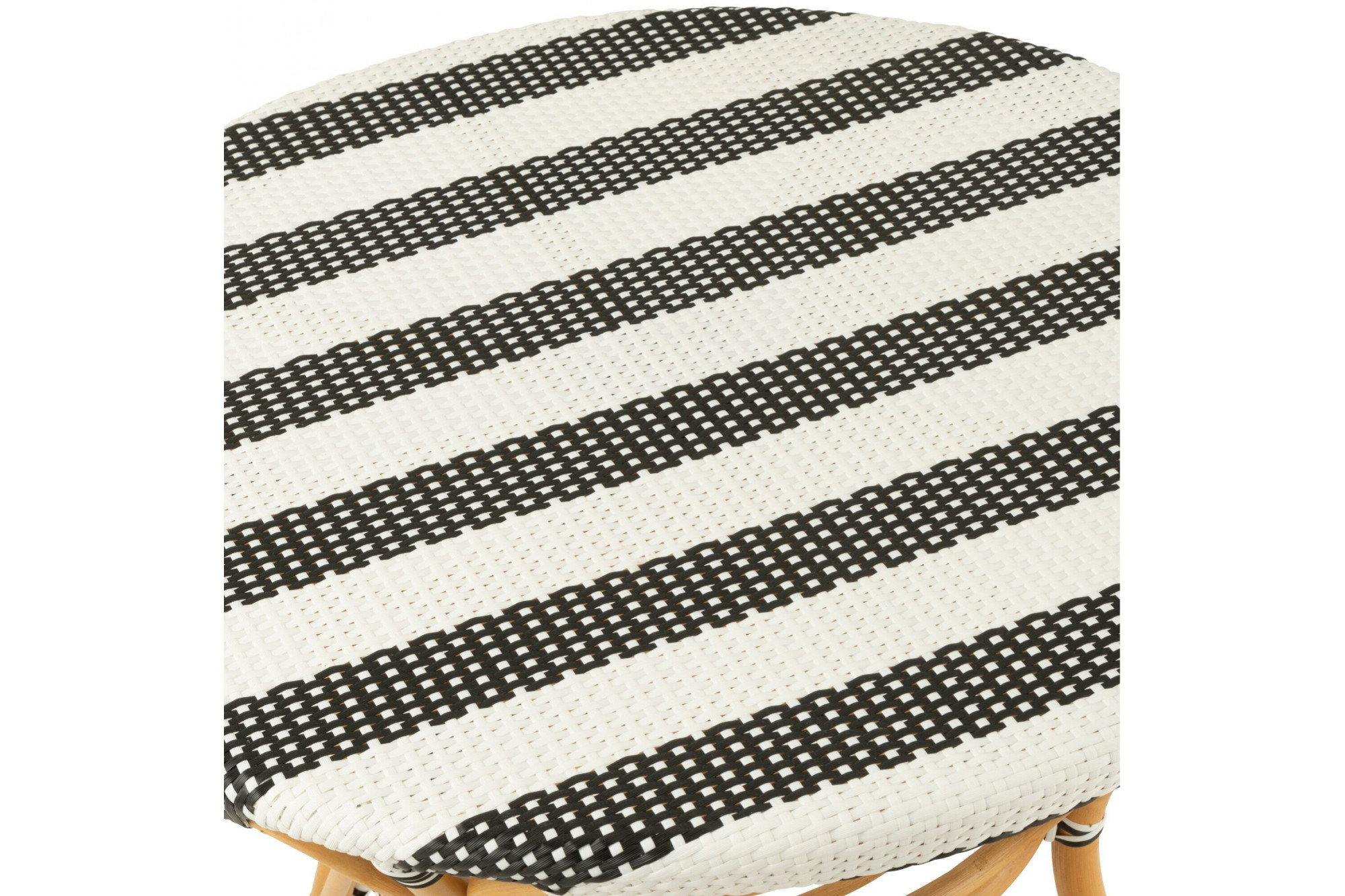 Apportez une touche parisienne à votre intérieur ou extérieur avec cette table à manger ronde au style élégant et décontracté. Son plateau tissé présente un motif de rayures en deux teintes contrastées : blanc/beige pour une ambiance douce et naturelle, ou blanc/noir pour un effet graphique et contemporain. Le piètement en rotin naturel, à la teinte chaleureuse, offre une structure légère et résistante, inspirée du mobilier d’extérieur. Un cadre aux lignes courbes et angulaires relie les pieds, ajoutant stabilité et raffinement. Cette table est idéale pour aménager une salle à manger conviviale, une véranda lumineuse ou une terrasse stylée. Son design tissé et sa palette chaleureuse en font une pièce polyvalente, parfaite pour créer une atmosphère accueillante et tendance. Elle fait partie d’une collection complète comprenant également des tabourets, des tabourets de bar et des chaises assorties, pour un ensemble harmonieux et élégant.