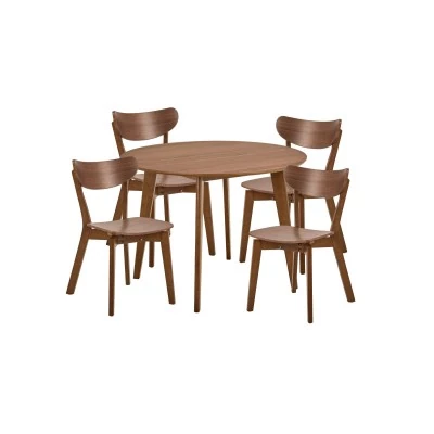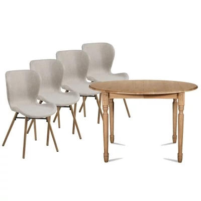 Table ronde extensible pieds fuseau D105 + 4 chaises tissu - VICTORIA