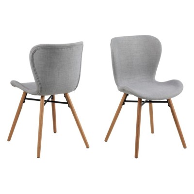 La chaise de salle à manger MATILDA est inspirée du style scandinave des années 50 et remise au goût du jour. Alliance de bois massif et de tissu, elle vous entoure de sa douceur et vous soutient avec force: pieds obliques, renforts en métal noir.