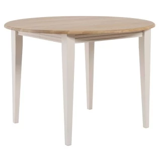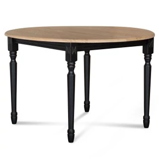 • Table ronde avec : pieds sculptés en chêne massif et allonge centrale.