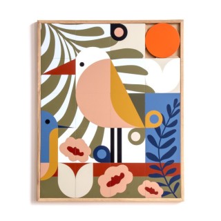 Taquin est un tableau qui met en valeur une illustration exclusive, imprimée sur des supports en bois. Ces palets indépendants sont soigneusement travaillés afin de s’assembler et de coulisser au centre d’un cadre en chêne massif. L’unique palet rond et orange, signature de la marque TAQUIN est la clef de votre imagination, positionné où bon vous semble, il se « tourne », se retire, se positionne et verrouille votre création du moment. Enfin, jusqu'à la prochaine fois, au gré de vos envies!