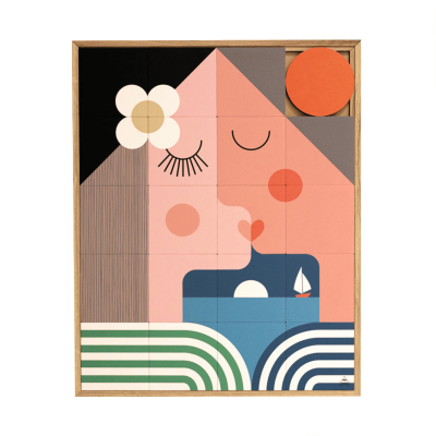 Tableau en bois taquin paysage de vacances 63 x 63 - FOLKS