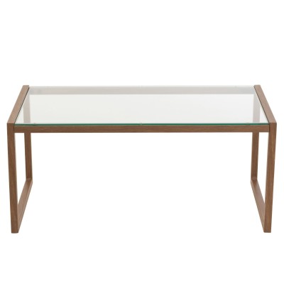 Un cadre en bois massif naturel souligne les courbes du plateau en verre.