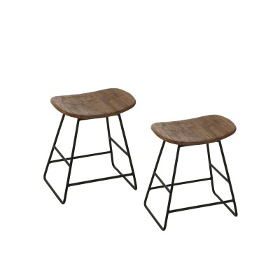 Tabourets de bar en teck recyclé brossé et en métal (lot de 2) - DILI