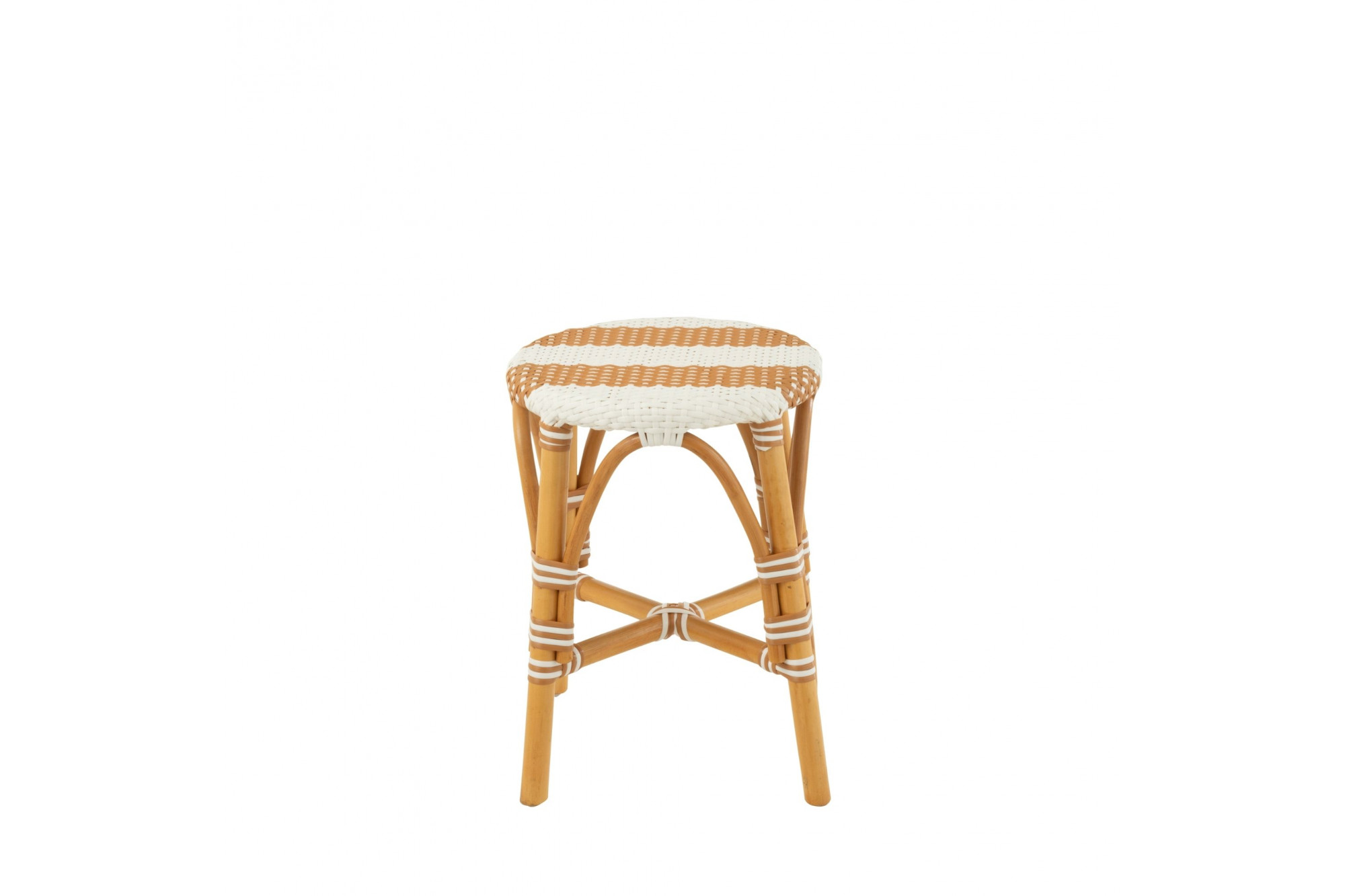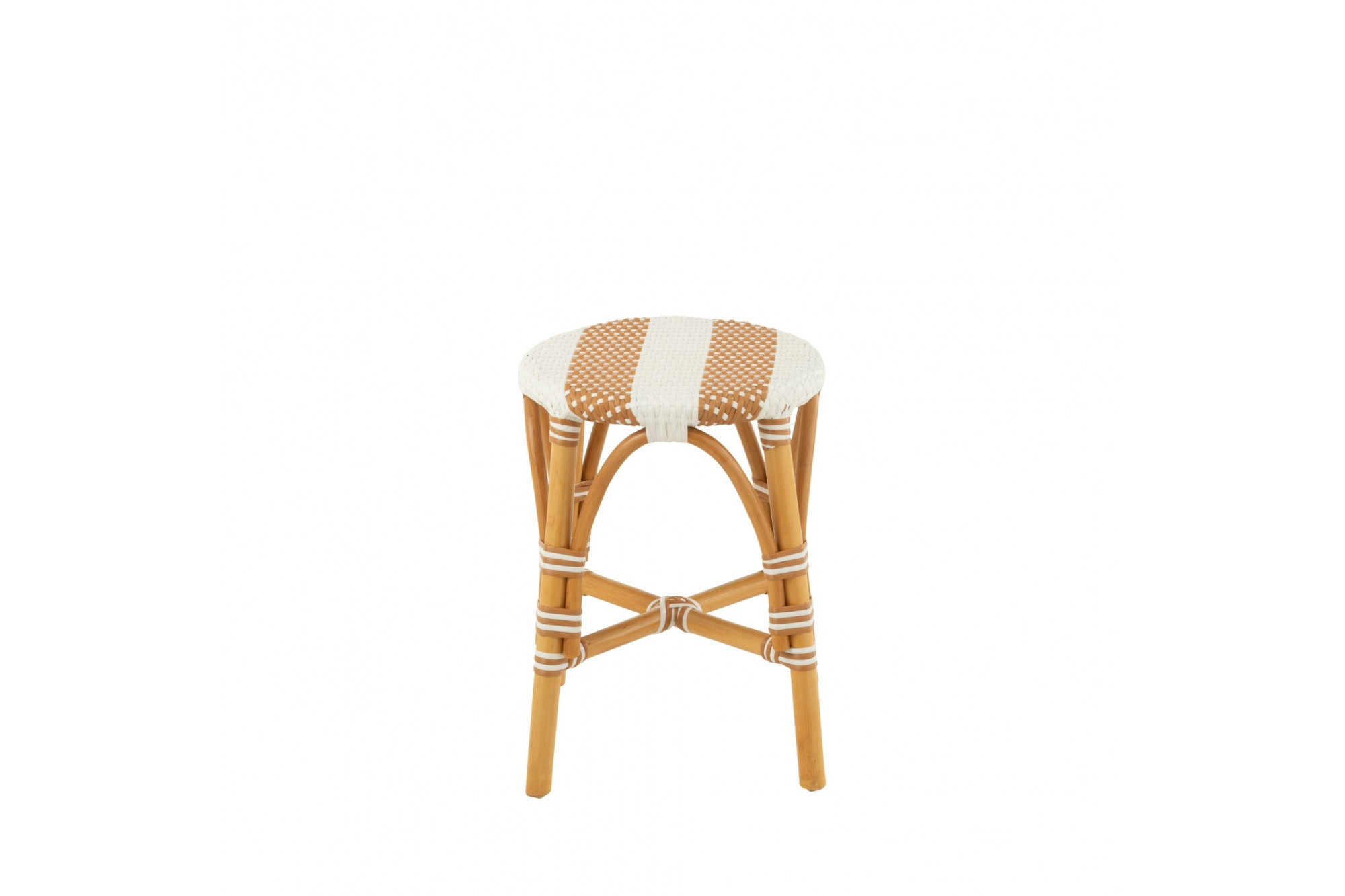 Ce lot de tabourets style parisien séduit par son design élégant et son esprit bistrot revisité. Chaque tabouret présente une assise ronde tressée en fibre synthétique imitation rotin, ornée de larges rayures blanches contrastantes. Deux déclinaisons sont proposées : blanc/beige pour une ambiance douce et naturelle, ou blanc/noir pour un style plus graphique. Le piètement en rotin adopte une forme croisée originale, avec des pieds pliés et des traverses horizontales assurant stabilité et charme artisanal. Ces tabourets polyvalents conviennent aussi bien en intérieur qu’en extérieur. Leur silhouette légère et leur palette neutre s’intègrent facilement à tous les styles. La collection se complète avec des tabourets de bar, des chaises et des tables rondes assorties pour une ambiance cohérente et raffinée.